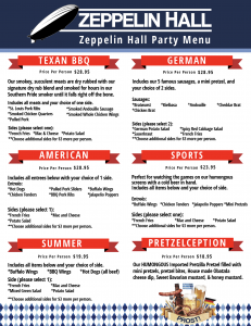 Zeppelin Hall Party Food Packages